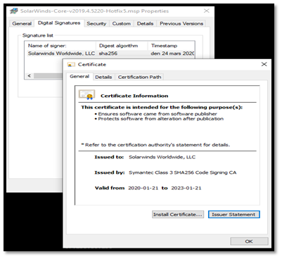 The DLL file that was compromised during this attack is named SolarWinds.Orion.Core.BusinessLayer.dll the file was digitally signed by SolarWinds along with the valid certification therefore any operating system wouldn’t raise any alarms while executing this file.