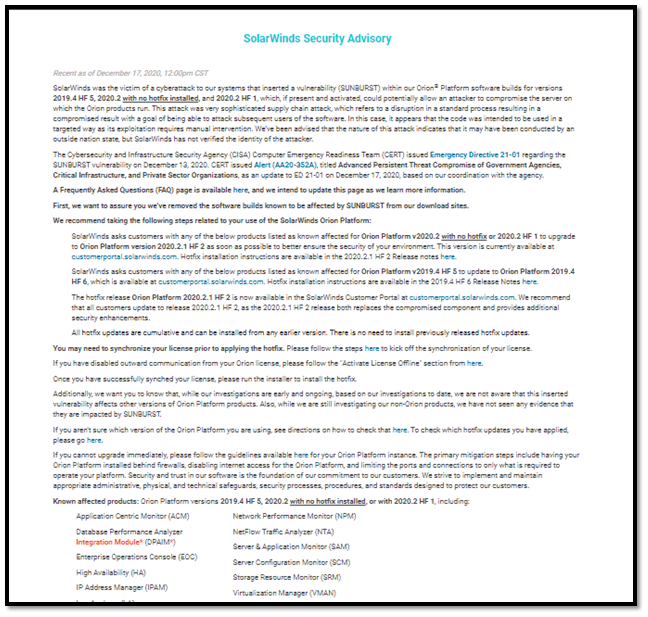 For your best security, we also share the SolarWinds Security Advisory for more clarifications and better understanding.